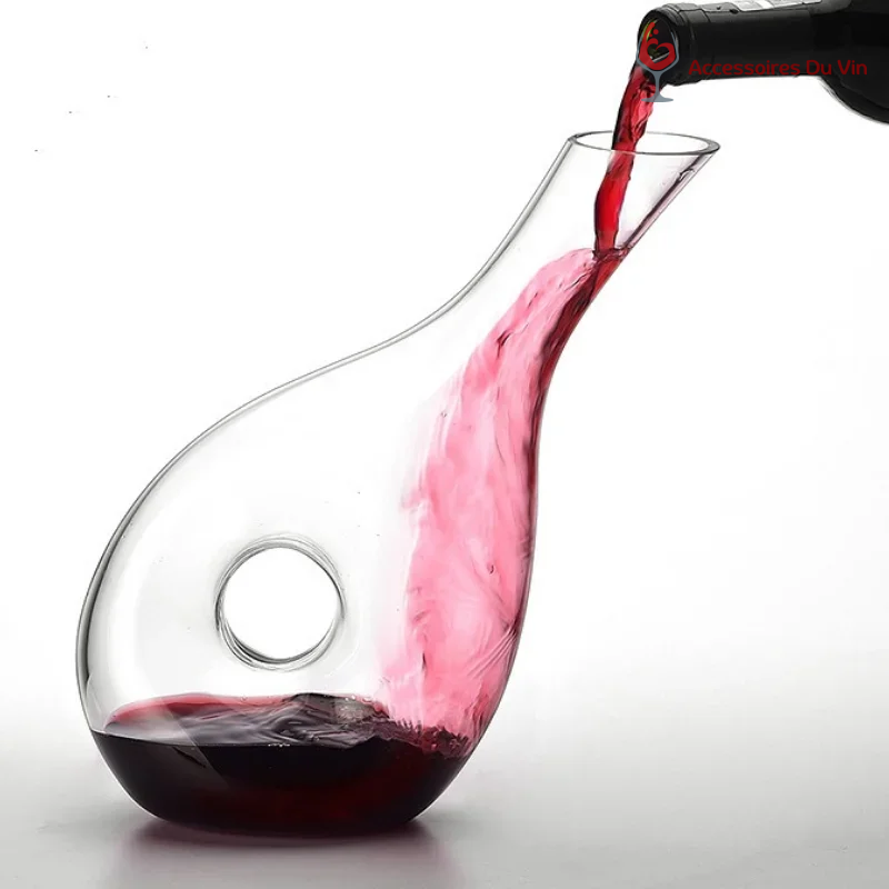 Ce modèle possède un trou ergonomique au centre, permettant une prise en main plus intuitive et sécurisée. Son design allongé favorise une belle oxygénation du vin tout en restant très facile à manipuler. Elle convient parfaitement aux repas conviviaux, aux dîners, aux dégustations ou aux cadeaux raffinés. Le trou apporte également une touche esthétique unique, faisant de cette carafe un véritable objet décoratif autant qu’un accessoire fonctionnel.