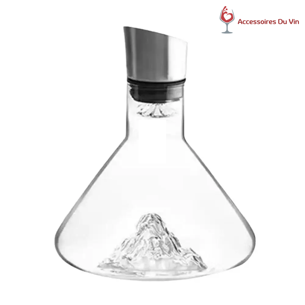 Son design évoquant un sommet alpin lui donne un charme unique, qui attire l’œil avant même d’avoir servi le vin.