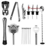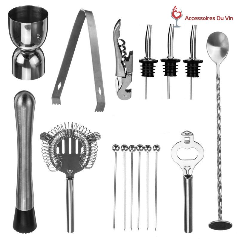 La passoire Hawthorne et la cuillère torsadée permettent de réaliser des cocktails parfaitement équilibrés, tandis que les pics à cocktail ajoutent une touche de raffinement à la présentation.