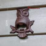 Le design du hibou est travaillé avec un niveau de détail appréciable : les yeux circulaires, la texture du plumage et les ailes qui s’étendent de chaque côté renforcent l’aspect décoratif de l’objet. La branche sur laquelle le hibou semble posé fait partie du moulage général et sert de support visuel à la zone d’ouverture. Une fois fixé sur un mur, le décapsuleur donne l’impression que l’animal fait partie de l’environnement, comme une petite sculpture utilitaire intégrée à l’espace.
