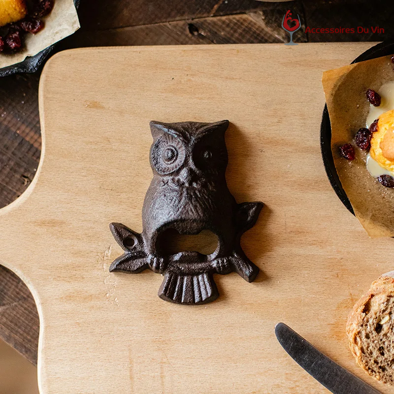Le hibou, souvent associé à la vigilance et à la sagesse, apporte une dimension symbolique qui peut plaire aux amateurs d’objets décoratifs thématiques. Ici, le symbole se mélange à la fonction, créant un accessoire dont l’utilité est renforcée par un style visuel distinctif. Ce type de design est apprécié par ceux qui aiment personnaliser leur intérieur avec des éléments atypiques, mais également par ceux qui souhaitent disposer d’un ouvre-bouteille fixe et accessible.
