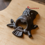 Le décapsuleur mural Hibou peut également être utilisé comme tirage de tiroir d’armoire, selon les indications fournies. Cette possibilité lui apporte un rôle polyvalent, permettant à ceux qui le souhaitent de l’intégrer dans une pièce en lui assignant une fonction différente. Sa forme sculptée, combinée à la solidité de la fonte, lui permet de jouer ce double rôle.