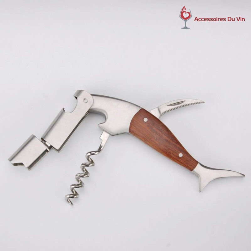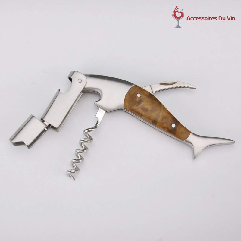 Ce limonadier exceptionnel tire son nom de sa forme inspirée d’un requin. Confectionné à la main avec passion, il est disponible en deux variantes de bois nobles : bois de rose et bois de ronce. Son manche ergonomique assure une prise en main confortable, facilitant ainsi le débouchage des bouteilles sans effort. Compact, il se glisse aisément dans votre poche, vous accompagnant partout. Avec son design original, ce limonadier est le cadeau parfait qui saura ravir vos amis amateurs de vin.
