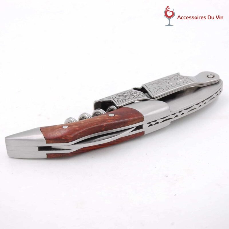 Avec son manche en bois antidérapant et découpé à la main, ce limonadier est idéalement conçu pour épouser toutes les tailles de main. Ses contours élégants ne manqueront pas de capter votre attention. Fiable et multifonctionnel, cet ustensile de serveur inclut un décapsuleur, un coupe-capsule, ainsi qu’un tire-bouchon équipé d’une mèche en queue-de-cochon à 5 spirales pour une performance sans faille.