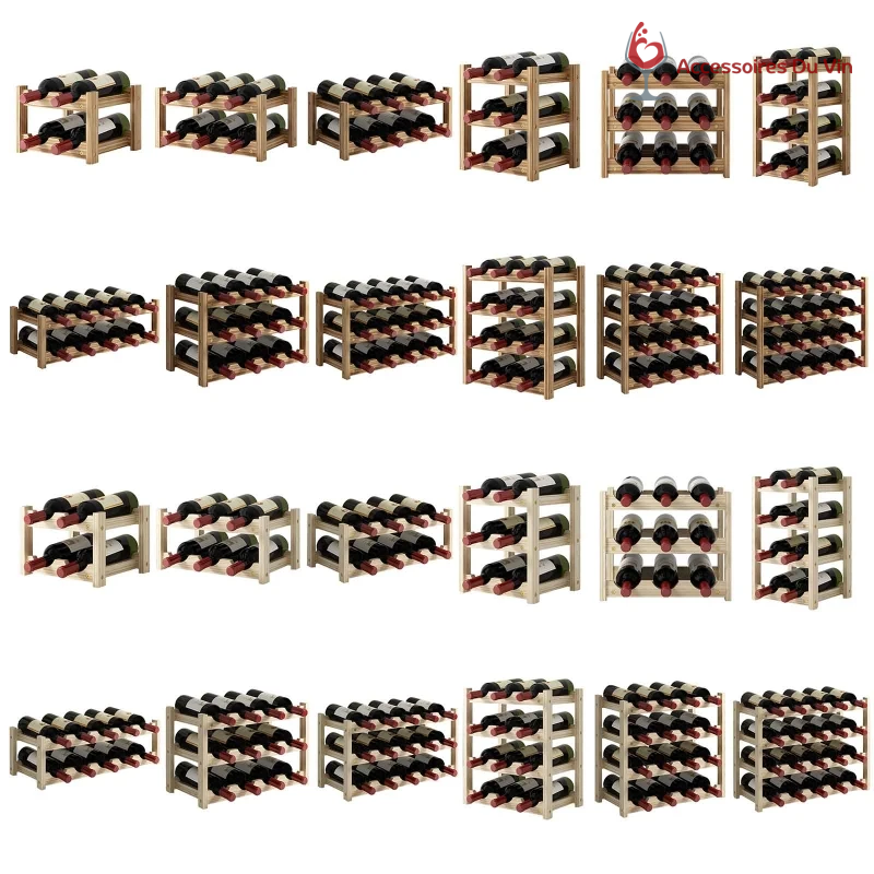 Grâce aux nombreuses variantes proposées, ce range-bouteilles peut répondre à des besoins très différents. Les petites capacités conviennent parfaitement à un usage quotidien ou à un espace restreint, tandis que les configurations plus grandes permettent de structurer une collection plus conséquente. Cette modularité en fait une solution de rangement polyvalente, adaptée aussi bien aux amateurs qu’aux utilisateurs disposant déjà d’un nombre plus important de bouteilles.